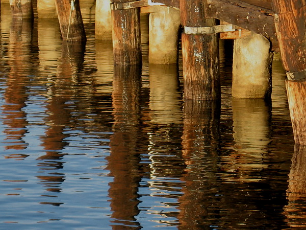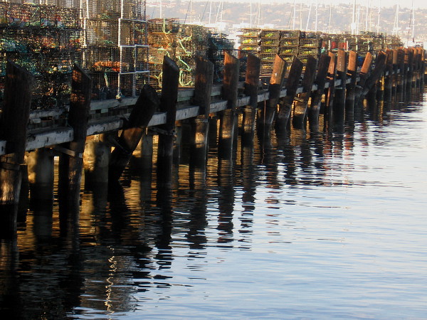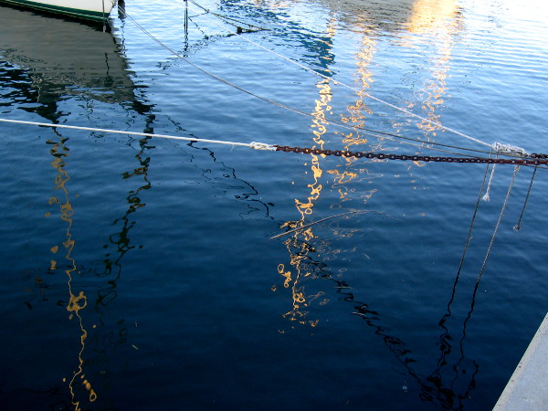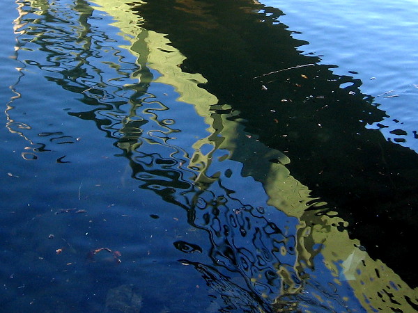 As I walked along San Diego Bay in the Crescent area, just north of the Grape Street Pier, I noticed all sorts of wavy reflections and elongated shadows. Many photographs, when I cropped them, became weird and mysterious.