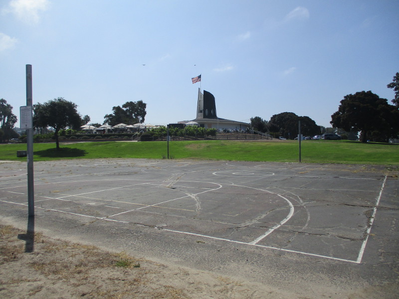 Gate One was the main entrance to Naval Training Center San Diego, and the grassy area with an anchor behind it is Sellers Plaza. As this webpage explains: Named for the base’s first commander, Sellers Plaza serves as the Naval Training Center’s front door.