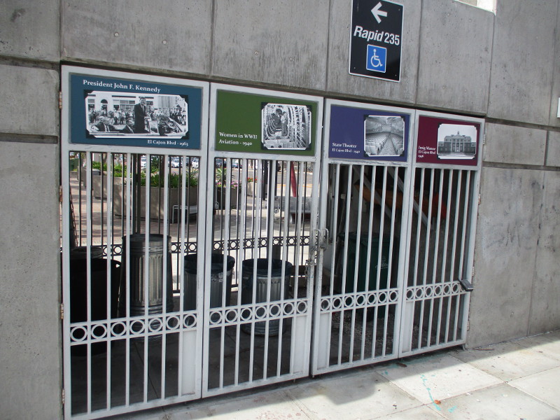 Today, while walking past Santa Fe Depot’s old baggage terminal building, I noticed how the sidewalk is being widened and made more attractive. Several bus routes have stops in the vicinity.