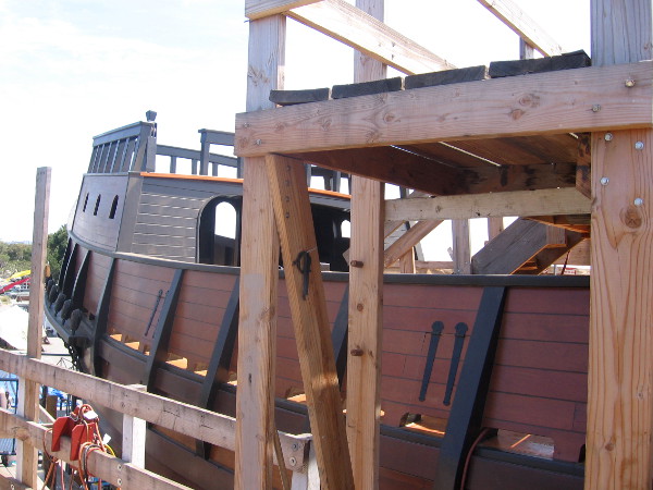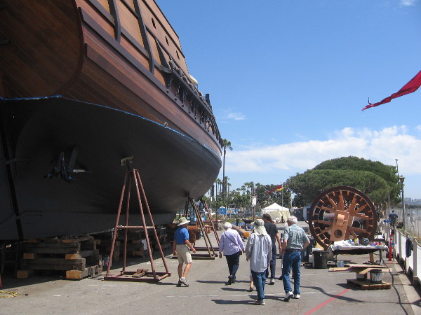 The plan, as I understood it, is to add ballast and complete the ship’s rigging while it’s docked by the Maritime Museum. I also heard that the museum hopes San Salvador is ready to lead other tall ships into San Diego Bay for the ceremonial parade at this year’s Festival of Sail! That would be very cool!