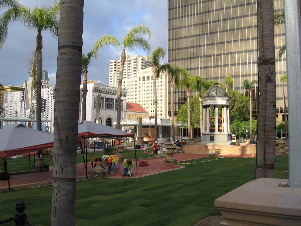 About a week before the grand opening of the new Horton Plaza Park, many workers were applying the final touches.