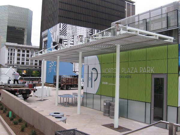 The modern, expansive Horton Plaza Park is a fantastic addition to downtown San Diego, but its creation took many years of planning and hard work. One last photo that was taken about a week prior to the grand opening.
