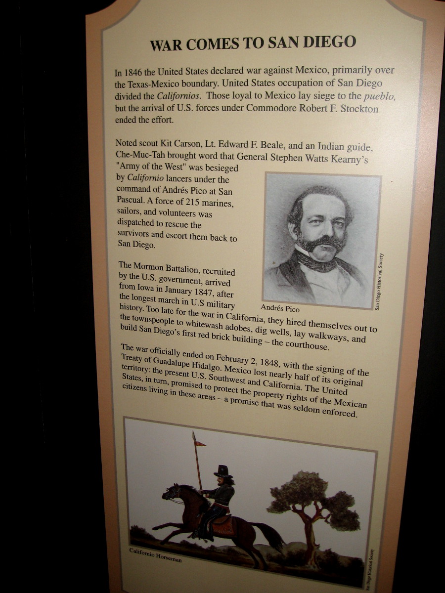 During the war, U.S. occupation of San Diego divided the loyalty of the Californios. The two sides fought briefly at the Battle of San Pasqual.