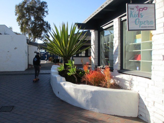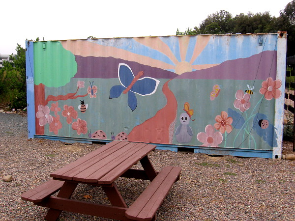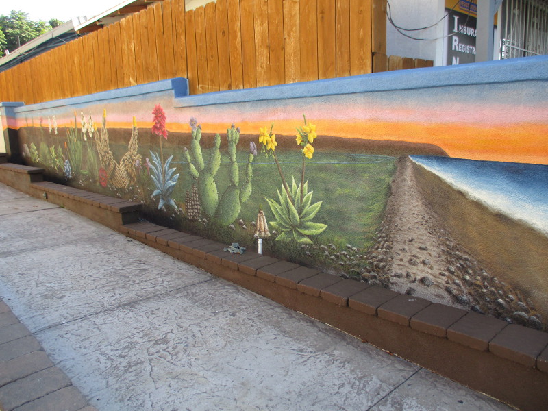 Today I headed down to Casa Familiar’s new Environmental Justice office at 161 San Ysidro Boulevard to see the mural, which was painted by Amanda Kachadoorian and other artists along a low wall nearby.
