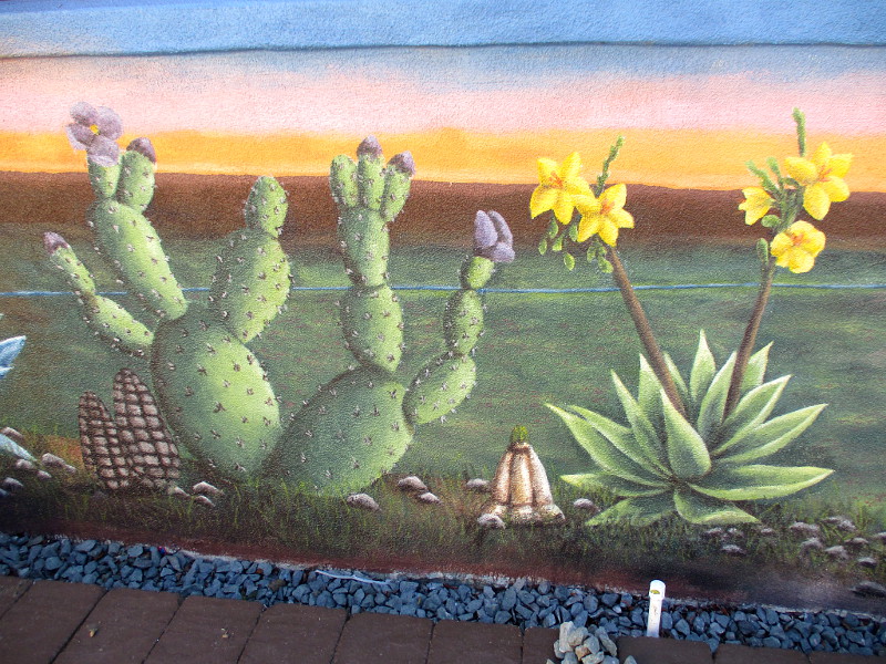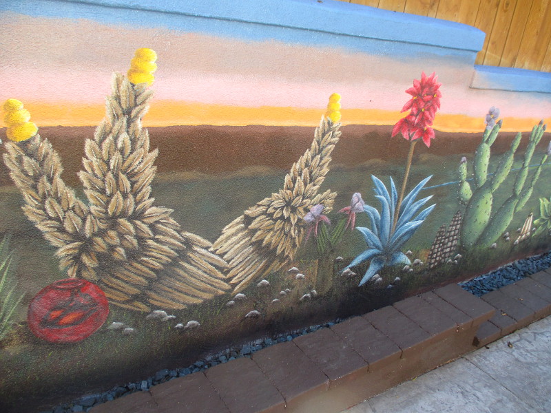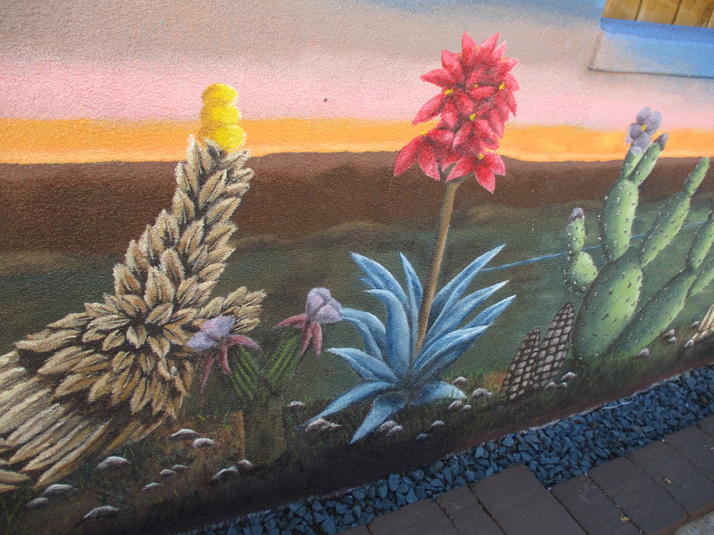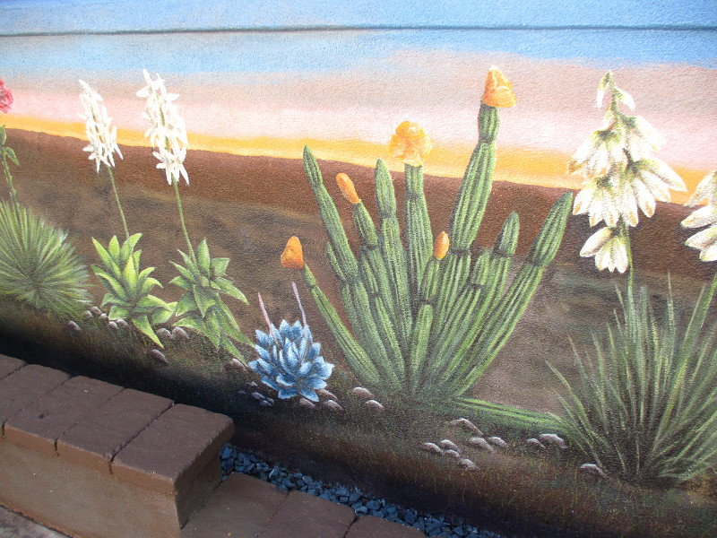 According to information I received concerning it, the “mural represents the fight for clean air by elevating conservation and restoration of natural habitats. The mural focuses on the Tijuana River Valley depicting a natural landscape with native plants…”
