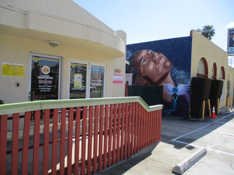 You can find the bronze plaque in Horton Square, an outdoor area north of the old Horton Plaza shopping mall. (Not to be confused with larger Horton Plaza Park.)