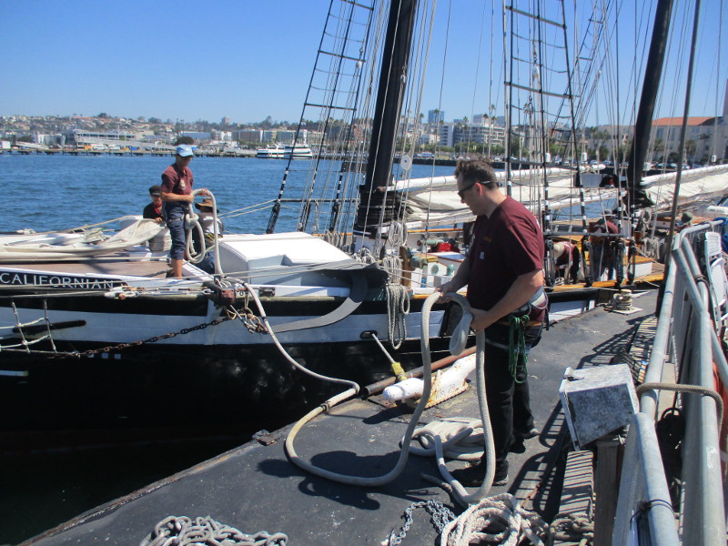 San Diego bay is a natural harbor. First sighted in 1542 by Spanish explorer Juan Rodriguez Cabrillo, the bay was originally named San Miguel. Next visited in 1602, Sebastian Vizcaino renamed the bay after a canonized priest, San Diego, from Alcala, Spain. Seldom visited for the next 150 years, Father Junipero Sera came overland from Mexico and founded the first of the California missions in San Diego (Old Town) in 1769. The mission grew and officially became an American town in 1846.
