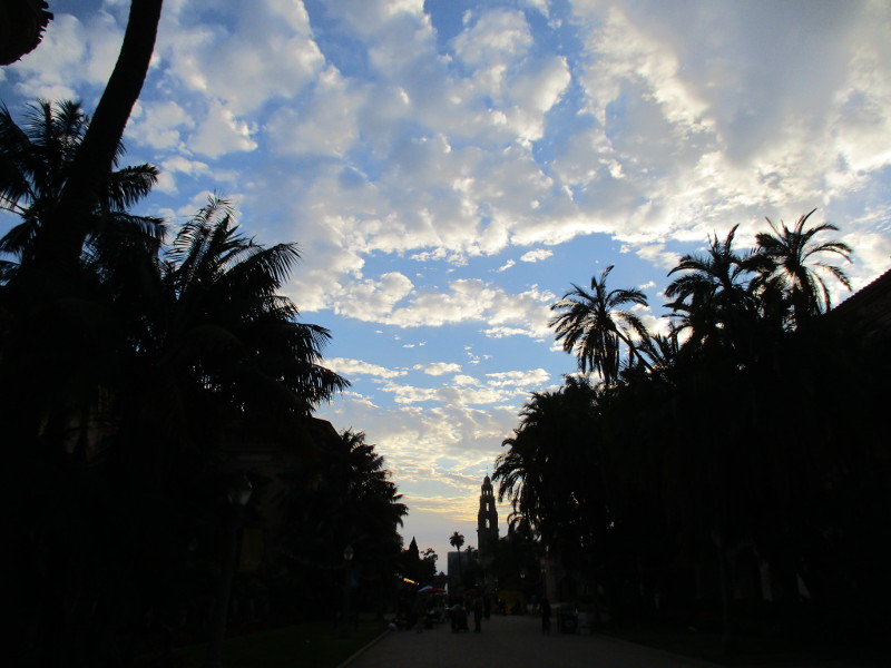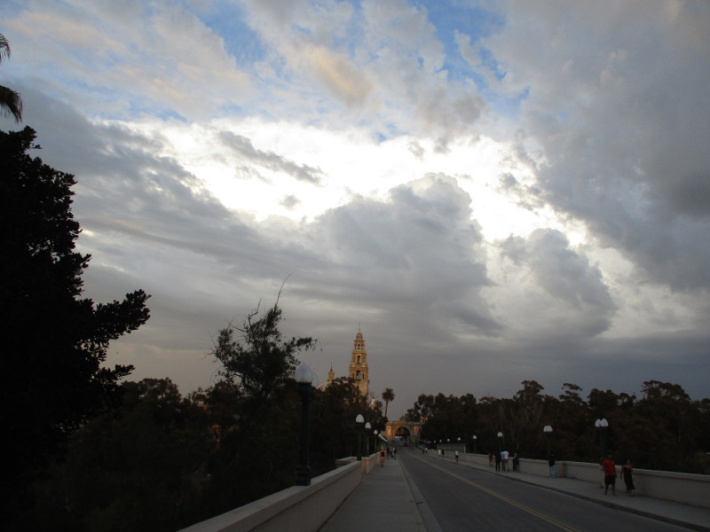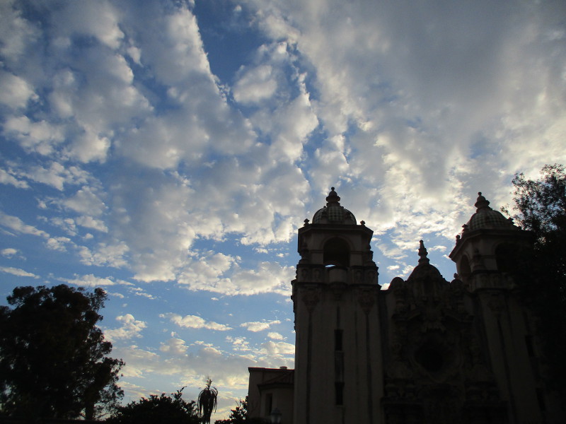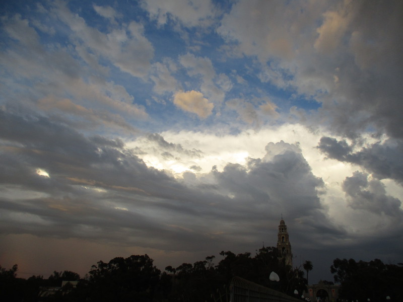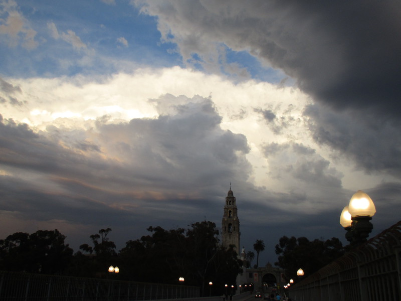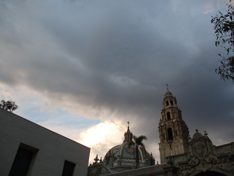 Bright, dramatic clouds crowned Balboa Park this evening!