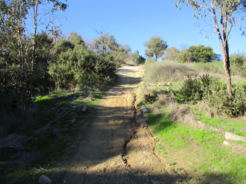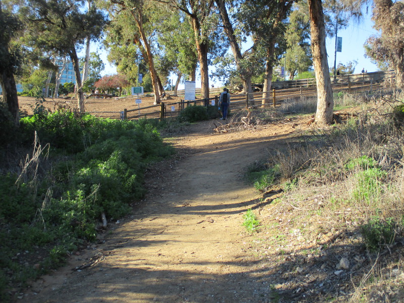 Approaching a split in the trail, where one can walk down under the Cabrillo Bridge.