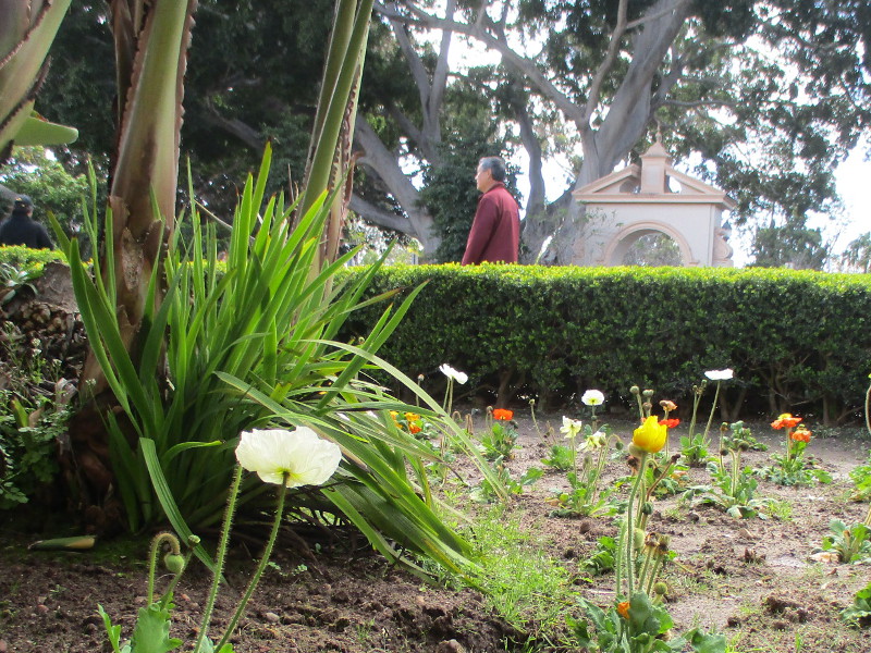 The first photo you see below was taken in front of the Casa del Prado Theater. I then headed west down El Prado, aiming my camera right and left, as the distant California Tower came ever closer.