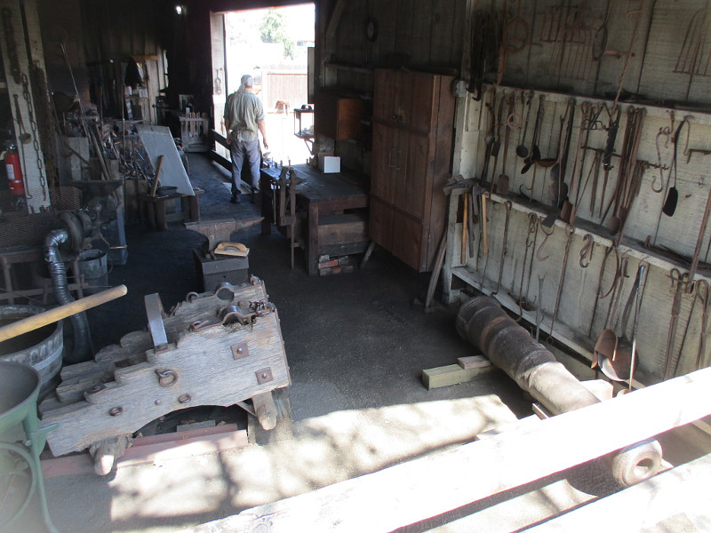 Whenever I visit Old Town San Diego State Historic Park, I like to walk over to the Blacksmith Shop to see what might be new. Then I explore the old wagons, carriages, anvils, a tyre bender, and other remnants from the past that are gathered nearby in a sheltered area.