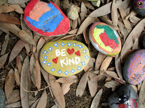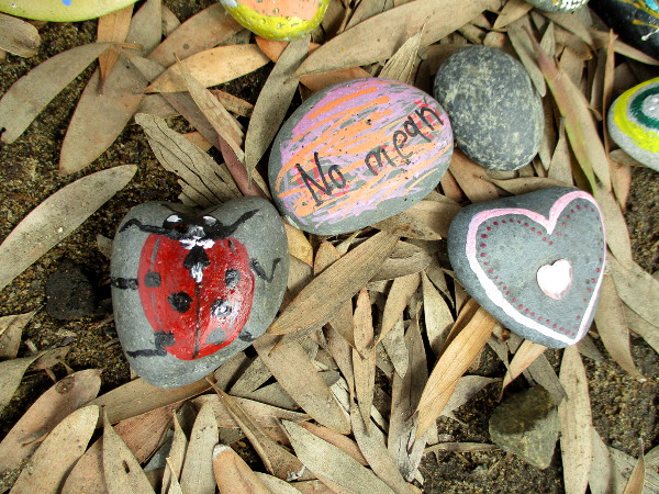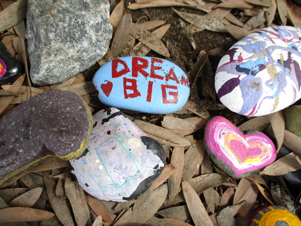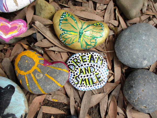 Scattered on dead leaves I found brightly painted butterflies and hearts. I read words expressing love and optimism. I saw painted dreams.