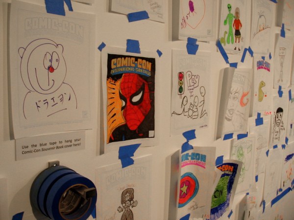 Today I entered the future Comic-Con Museum in Balboa Park to check out PAWmicon! As I walked around, I poked my nose into the gallery where the Cover Story: The Art of Comic-Con 50 exhibit is located, and in one corner I discovered walls full of original art created by kids!