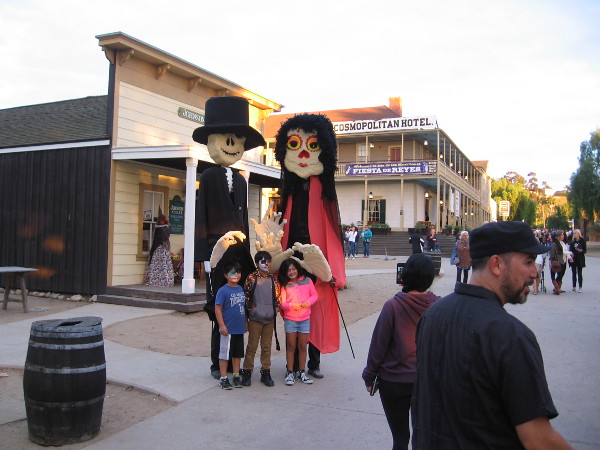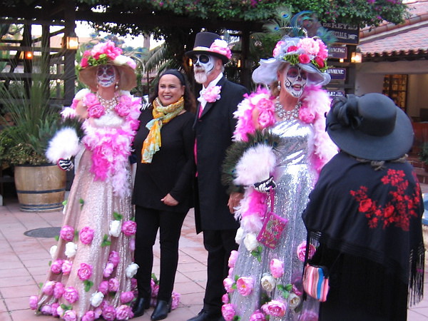 Love and memory were written on so many smiling faces as people celebrated their departed loved ones. Chalk memorials and scattered marigolds lined San Diego Avenue. And the evening ended with a candlelight procession from Old Town San Diego State Historic Park to the small El Campo Santo cemetery. A walk of several blocks in the growing darkness . . . a short walk down a road brightly lit by love.