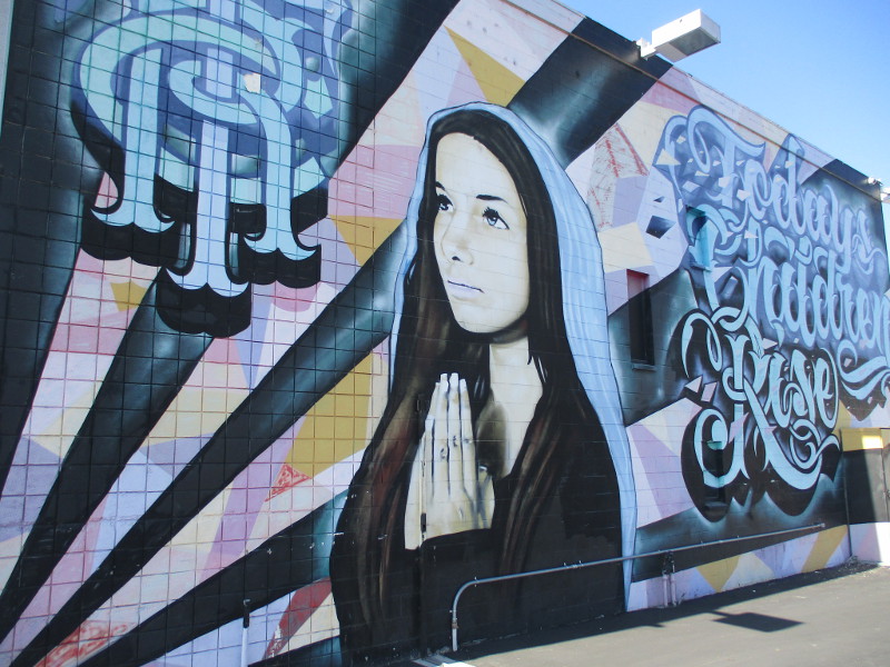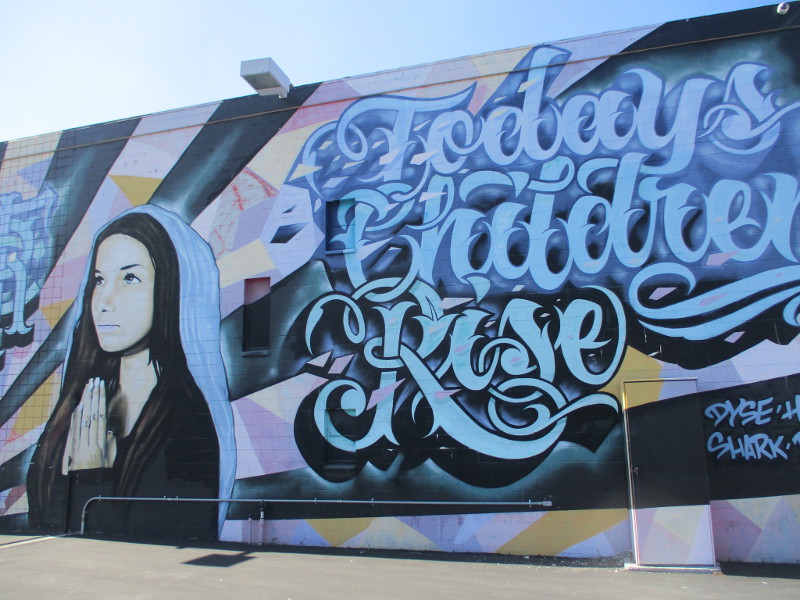 I learned that Dave Eassa himself helped children visiting the museum to create the art on the sails. The names of the young artists are even listed on one wall as visitors step into the gallery.