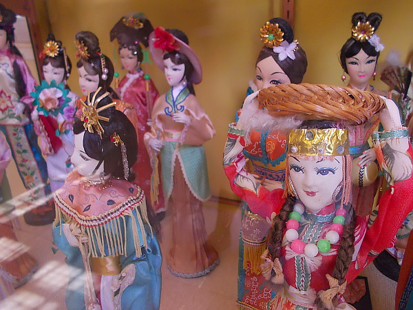 Several fascinating displays were at the Chinese New Year event in Balboa Park. This gentleman wrote people’s names using Mandarin characters.Lots of authentic Chinese food was being gobbled up, including these Green Onion Pancakes!Many Balboa Park visitors were heading into the House of China cottage today.Fine exhibits inside the House of China include this interesting carp made of animal horn.Kids look into a display case containing many porcelain dolls.A colorful collection of beautiful porcelain dolls inside the House of China in San Diego’s always wonderful Balboa Park!