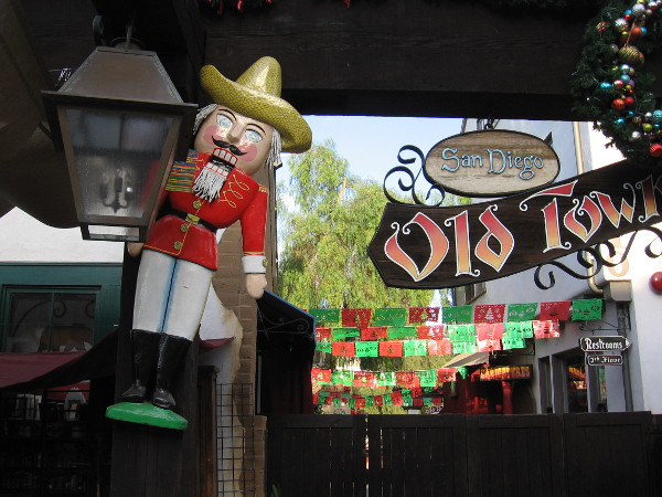 After I got off the trolley at the Old Town station, crossed Congress Street, and entered Old Town San Diego State Historic Park, my eyes began searching for holiday decorations.