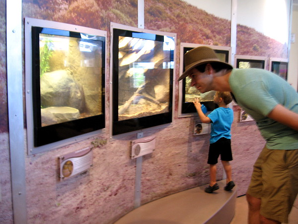Before my hike through Sweetwater Marsh, I enjoyed a visit to the Living Coast Discovery Center, which is located inside the San Diego Bay National Wildlife Refuge. Exhibits inside the center and clusters of wildlife tanks and enclosures outside allow visitors to see and learn about the animals that make this refuge their home. The place is just right for families, with kid-size educational displays, short, easy paths, and even some picnic tables. If I were a young kid, having a birthday party here would be really cool!