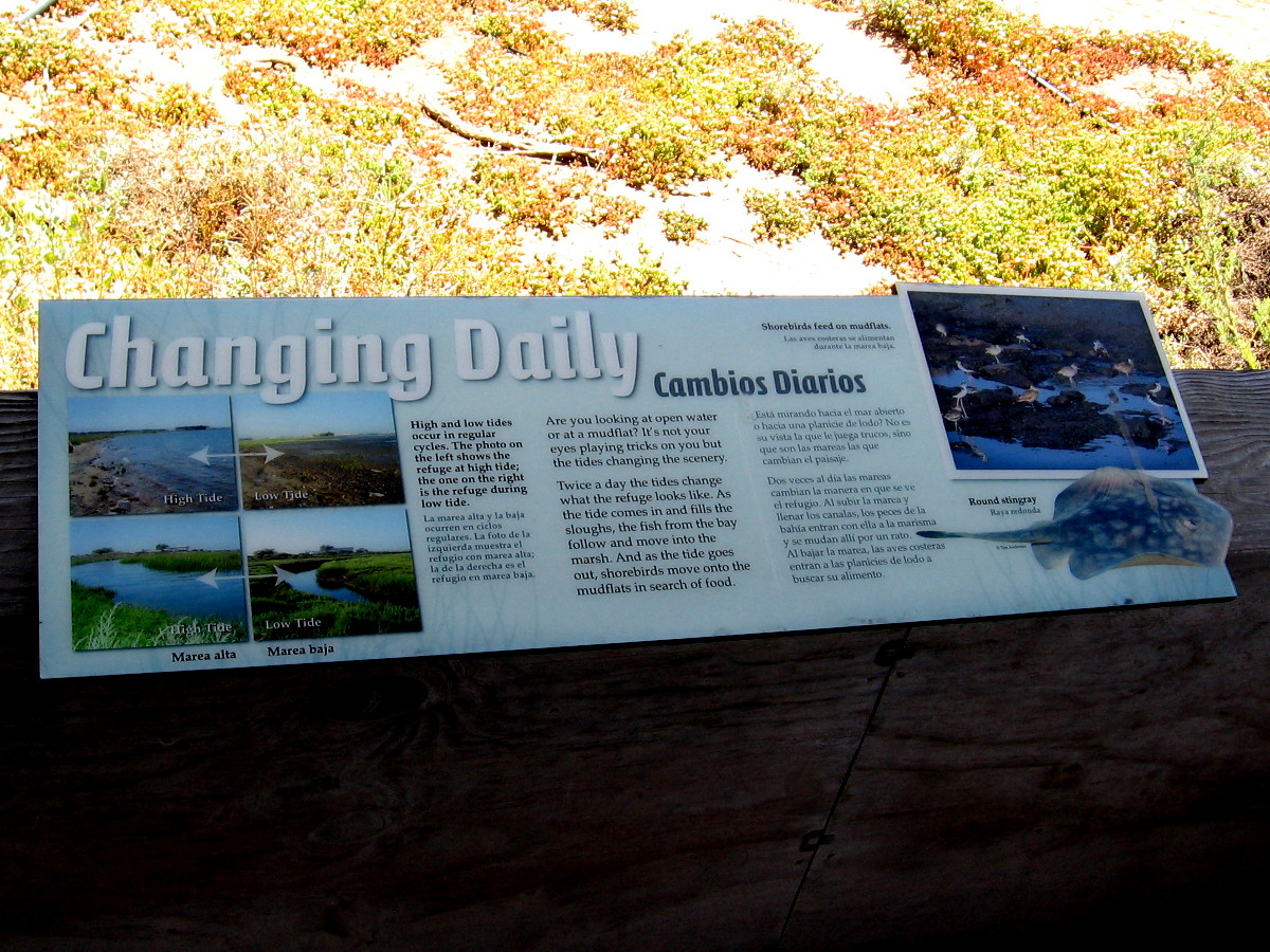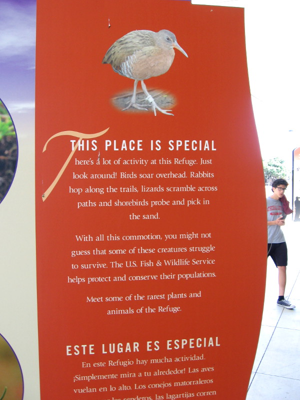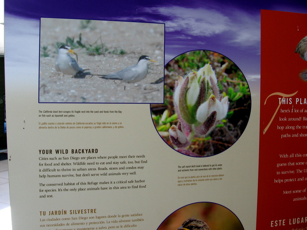 After checking out the exhibits at the Living Coast Discovery Center, I ventured over to an adjacent building that is the San Diego National Wildlife Refuge Complex headquarters. Some great displays outside provide more information about the unique and beautiful wetland that stretches in all directions. Not far from this building, one can easily find a hiking trail that leads across the marsh to San Diego Bay.