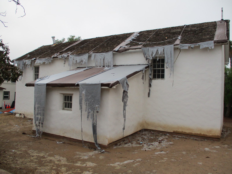 I recently learned that the historic Old Adobe Chapel in Old Town is being repaired and restored by the City of San Diego. I was told the roof leaks and a long, very serious crack was discovered along one wall. (I believe you can see it in one upcoming photo.)