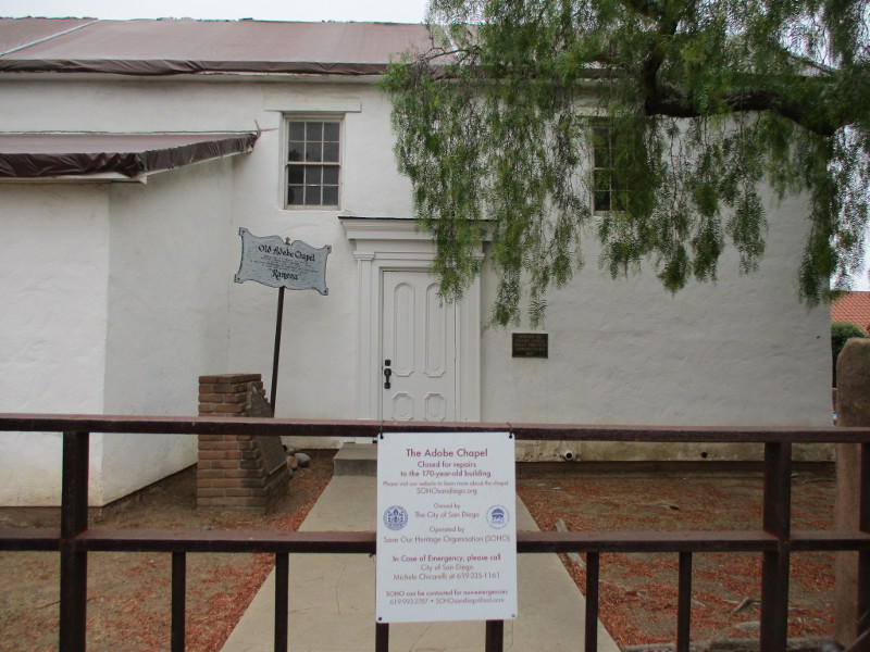 (UPDATE! I was told in late 2024: I just saw a post of yours from when SOHO was running the Adobe Chapel in Old Town. We no longer operate it and haven’t since 2020. Here is updated text for you: In 2020, SOHO ceased operating the Adobe Chapel due to structural and public safety concerns with its need for earthquake retrofitting. The City of San Diego is still, four years later, studying these needs, but the chapel remains standing today, awaiting its next chapter. We encourage city officials not to forget its duty towards this important beacon of spiritual, cultural, and community life.)