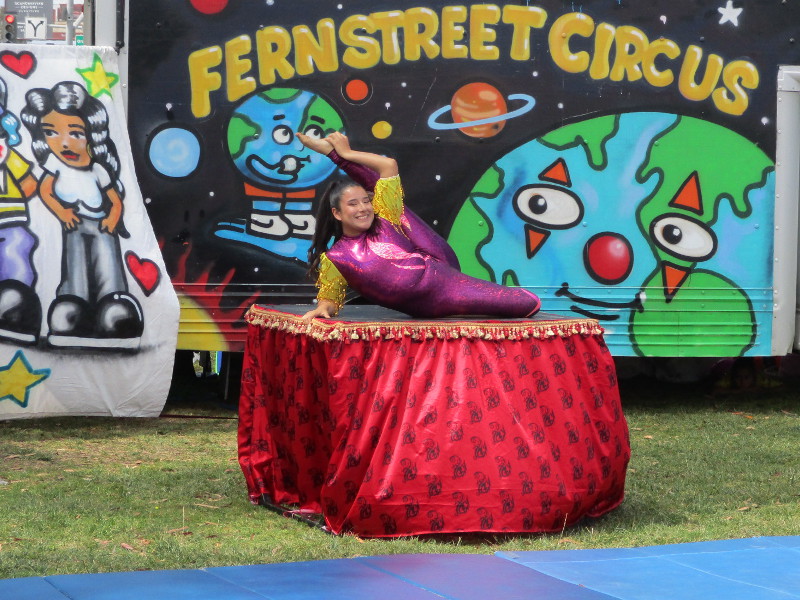 I walked along Adams Avenue, stomach rumbling from all the delicious smells. I stopped at several of the stages to listen to live music. Then, in the early afternoon, I enjoyed a performance by San Diego’s own Fern Street Circus!