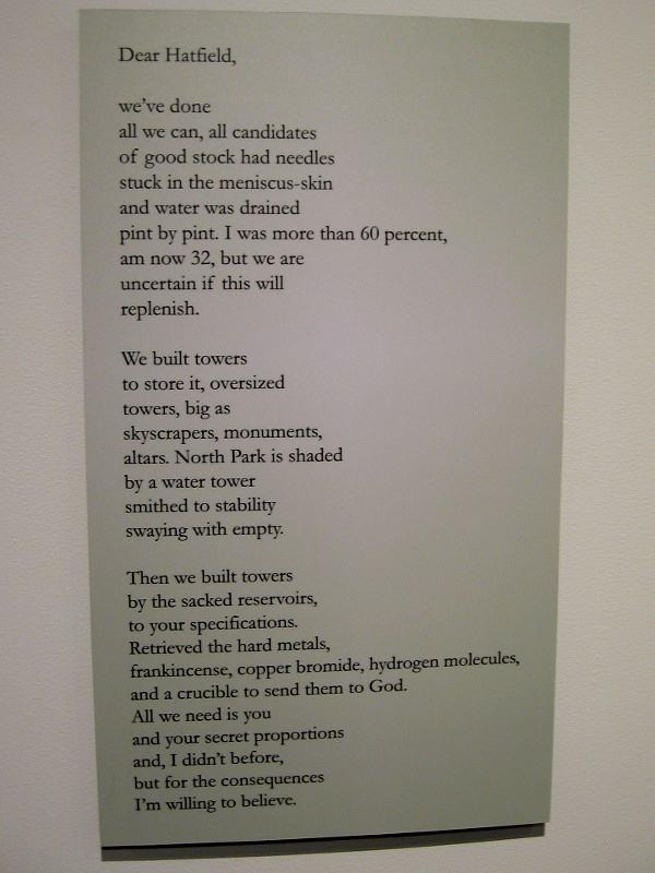 Gabriel Kalmuss-Katz, Dear Hatfield, 2015. Speculative writing. Reflects modern anxiety associated with urbanization.