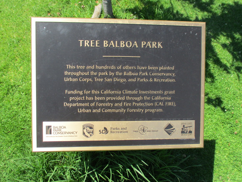 This tree and hundreds of others have been planted throughout the park by the Balboa Park Conservancy, Urban Corps, Tree San Diego, and Parks & Recreation.