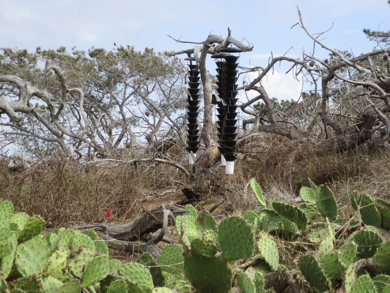 …The stacked black funnels that are seen on a dead Torrey pine contain a specialized chemical pheromone to attract and trap beetles…
