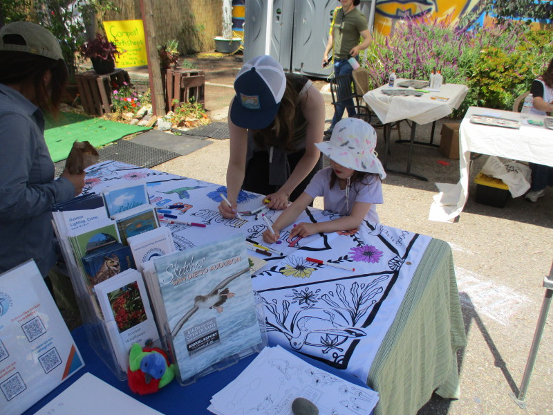 The San Diego Audubon Society table had tons of information about their current activities, plus beautiful bird artwork and a mural coloring station. (I learned their Bird Festival this year was a big success!)