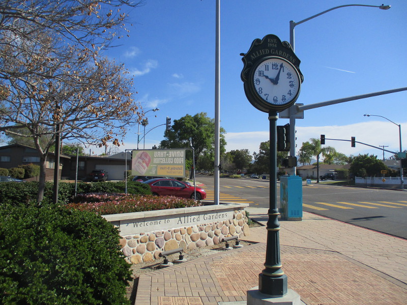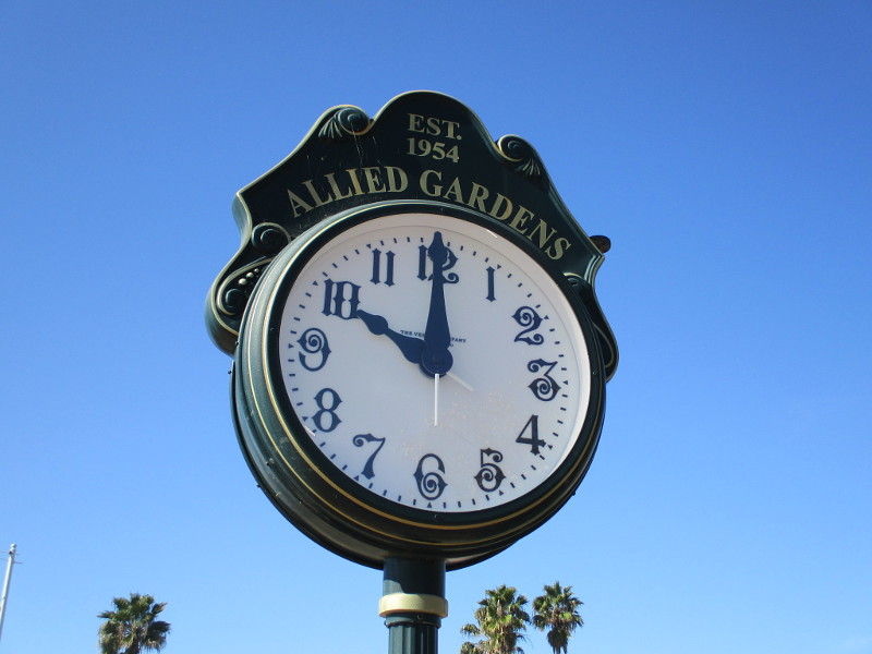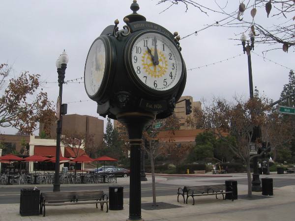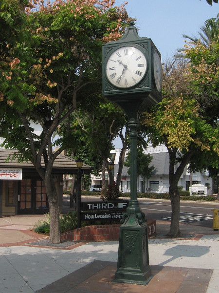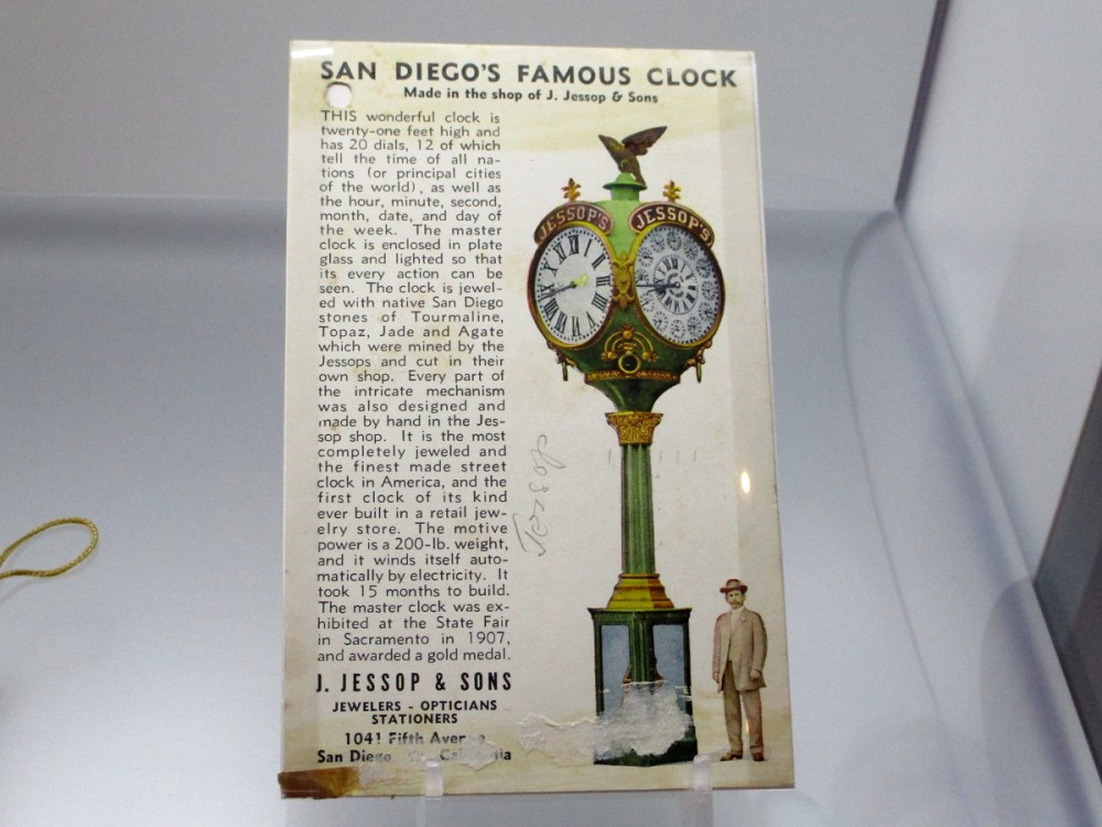 The 20 feet tall clock is very unique. The “Solar Post Clock” is said to be the first solar powered clock to be installed in San Diego. It was a gift in 1983 from Seiko to Jacobs & Sons Jewelers, a family business that once was located on the corner of B Street and 7th Avenue. You can read more about the historic clock here.