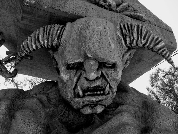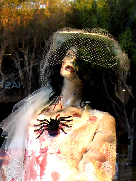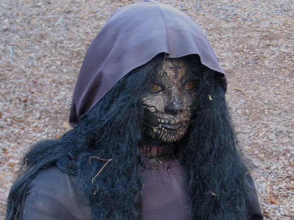 Most of these very scary, spooky photographs were taken in past years around Halloween. Ghosts, grim reapers, demons and bloodthirsty monsters were encountered in Balboa Park on the Haunted Trail. The deformed zombies? I took those photos during Comic-Con! An elegantly dressed skeleton couple materialized in front of my camera in Old Town on Dia de los Muertos. Other frightening faces appeared just before Halloween in shop windows!