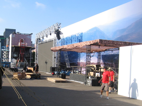 A building wrap is being applied to the Hilton Bayfront, and the Adult Swim offsite has barely begun to appear. No FXhibition as of yet.