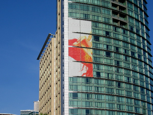 The cool DC Universe wrap on the Hilton Gaslamp appears to be halfway applied.