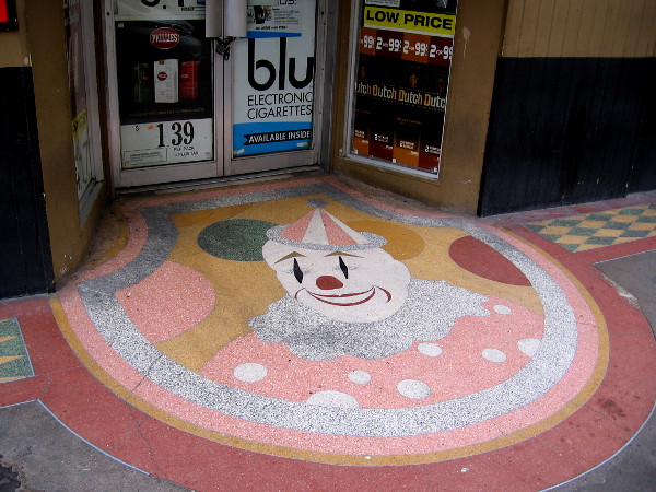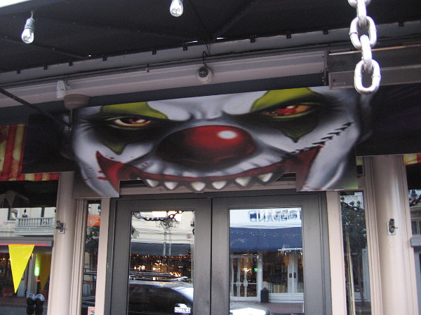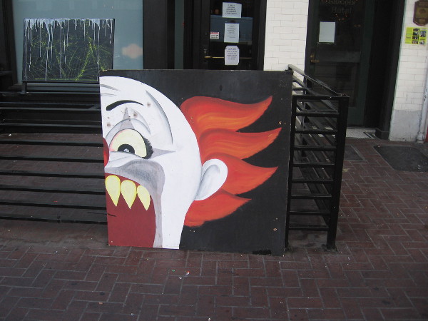 Walking through the Gaslamp yesterday, I saw this scary clown head on the Fifth Avenue sidewalk, but today it’s gone!