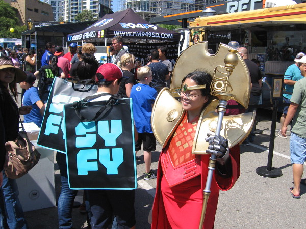 The Iron Patriot is on patrol in the Gaslamp during Comic-Con.A good Star Wars cosplay!The Syfy band was entertaining the crowd on Fifth Avenue in the Gaslamp Quarter for SDCC 2017.Dancing to the music!I saw lots of Wonder Woman cosplay. Not sure about the cowboy guy.An awesome Loki cosplay!Looks like Captain Jack Sparrow found himself a friend.He told me his cool cosplay but I didn’t write it down. Leave a comment if you know!The San Diego USO was having people Flex 4 Forces.This Sentinel Services guy wanted me to get tested for the X-Gene. But he implied if I was positive, I’d be sent away on one of those Mutant Transport trolleys!Some very cool Overwatch cosplay!Broad City had a fan man dancing about.Syfy had a handy Cosplay Repair cart along MLK Promenade!These items can be useful in repairing a costume or makeup during Comic-Con!People peddle the Syfy Trivia Trolley while answering questions for prizes!Lots of fun and cosplay everywhere I turned!A lucha libre mask!Santa Claus is busy taking a photo of something up ahead…Supergirl on stilts!Superman had to settle for a Segway. Some kryptonite de-powered him for the moment. I think Batman might have done it.Now that’s a real, genuine Silver Surfer!Another Wonder Woman and cosplay friend.It’s Lady Thor in the Petco Interactive Zone!Cosplayers at Comic-Con are interviewed by Comedy Central.Joker is on the scene!A super awesome Voltron group cosplay photo!Have you seen her Paladin?Schick Hydro Robot Razor is a superhero to the rescue, but it’s a close shave.Fans of the series Mr. Mercedes get ready for a photo.I found the Holy Grail at 2017 San Diego Comic-Con!