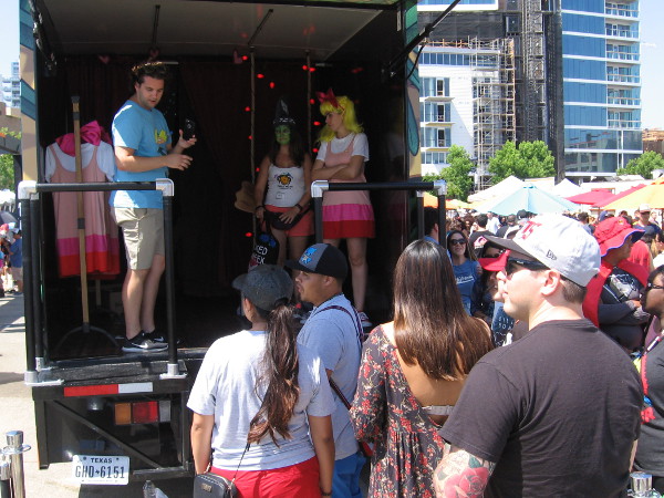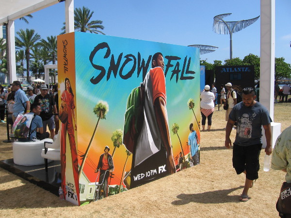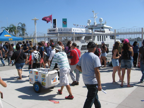 And like every year during Comic-Con, food can be found all over the place.Some cool Venture Brothers cosplay at San Diego Comic-Con!Here comes Princess Leia with her entourage.Looks like Wonder Woman is in pursuit of Dr. Who.Check out that huge sword! It’s a great cosplay of Cloud Strife from Final Fantasy!A cosplay of Sans from Undertale.Thursday morning a bit after nine o’clock and the Interactive Zone at Petco has just opened for 2017 San Diego Comic-Con.I’m already hungry for a Wookiee Cookie.A line has formed at Blizzard’s Lich King’s Ice Cream Citadel.Hello Futuristic Ladies of the Galaxy!People in line to check out an attraction promoting New Line’s production of Stephen King’s It.Jack in the Box’s Crave Van smashed through a wall of comic books in the Interactive Zone! Too much fun!A super cool full size replica of a Star Wars T-47 Snowspeeder created by hobbyists who belong to Real Movie Toys.A guy from Sphero shows off their new Spiderman robotic toy that interacts. Kind of like Alexa with voice recognition.People in the Interactive Zone could sit in a Luke Cage set and have their picture taken! There was also a Game of Thrones and Orange is the New Black set!People get ready to enter Sprout’s Kody Kapow attraction.This guy is cosplaying Bibleman!Boom Howdy has posted Missing signs around San Diego.Near Petco Park I saw this cosplay of Goku from Dragonball Z.Wonder Woman on a window in San Diego.I spied this cool truck in a parking lot. Black Eyed Peas present Masters of the Sun.A parking lot downtown has been converted into a Viceland promotional area.Have no fear! The Teenage Mutant Ninja Turtles are coming down the sidewalk! Hide the pizza!I learned these actors are performing in Game of Thrones the Musical at the Tenth Avenue Arts Center in San Diego during Comic-Con.Adventure Time cosplay!