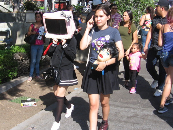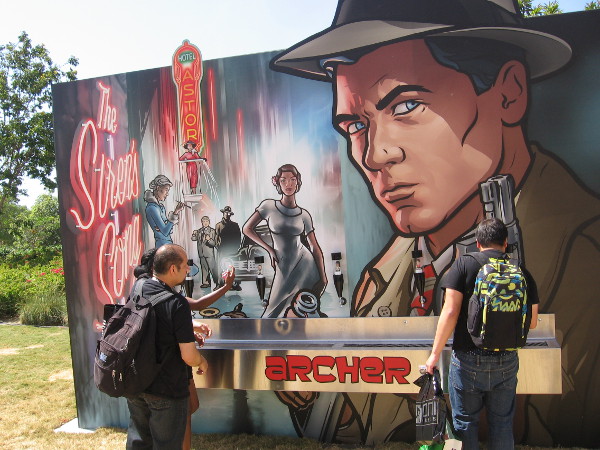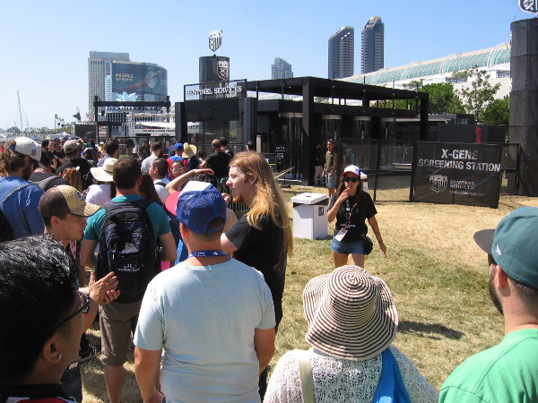 I started off my walk by getting a free Nickelodeon ice cream sandwich at Horton Plaza Park!It seems the Borg and the Federation have joined forces.That crazy, super energetic Syfy drum line is in the Gaslamp again!Must get the hair just right before taking a nice picture with a shark.It’s Jason! Run!Very cool.The latest Mummy is getting all wrapped up at Comic-Con.So much humanity, one can barely move.Profile of a Ferengi.Friendly Neighborhood Spiderman has a buddy.Lego Ninjago characters welcome a Comic-Con fan!People everywhere.Cosplay in the Petco Interactive Zone.Some laser tag action.A party inside the Hey Arnold! The Jungle Movie truck.Making friends with Godzilla.More crowds.More cosplay.Don’t ask.Heading down to the area near the Hilton behind the convention center.I guess those Star Wars lasers do manage to hit something from time to time.Salsa picante!Big video screen at the FXhibition.Bolivar Master, from Season 3 of The Strain.A creepy Strigoi Stinger from The Strain.Free water at Archer, but bring your own cup.Cool Snowfall graphic.A pleasant Legion swing.A convenient Snowfall shoe lacing station.Looking cool!Yodeling.People are eager to be screened for the X-Gene.Here comes a couple now.They are placed in a transparent tube by Sentinel Services.An alarm goes off! X-Gene detected! Mutants! The tube fills with some sort of gas!The Orville Space Training Station readies astronauts to be spun like crazy out of control.A shark fin swimming past Adult Swim.Thor and others walking near the entrance to Adult Swim.Thousands of nerds. I feel right at home.Yes, a perfect day for ice cream.Yikes. I surrender.At first I thought he was a castle. He informed me, however, that his cosplay is silverware.An original cosplay inspired by H.P Lovecraft, I was told.Conival was being held on the terrace near the Marriott Marina.Folks chill at Conival.Kylo Ren uses the Force to extract cold mist from a fan.Posing as astronauts amid flying saucers.Looks like some ordinary person is just walking along heading to the hotel.These guys started with established characters then added their own original stuff.These sinister villains are in pink and black uniforms.The Cartoon Network balloons seen from Children’s Park. One of the balloons burst I was told. A bird hit it.A caricature artist at work on MLK Promenade.Superboy transforms into The Tick.Someone had a transplant. They now have a monitor instead of a head.Cleaning up means finding cool swag!Batman’s Rogue Gallery has the Caped Crusader and Robin surrounded.The DC superheroes and supervillains seem to be getting along better than usual.An awesome Transformer stands high above the Comic-Con crowd in the Gaslamp.I don’t know this cosplay. Pretty cool, though. UPDATE! Sam commented that this is likely Azrael Batman.I’m pretty sure that’s Cable of the X-Men.Yes. It must be another San Diego Comic-Con!