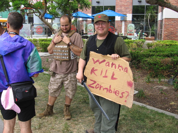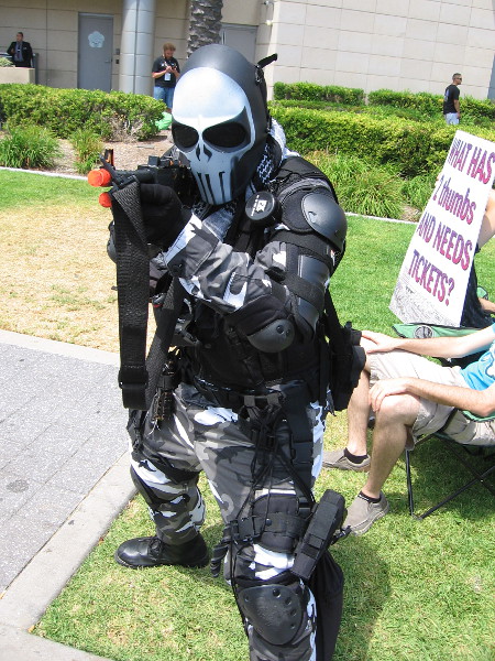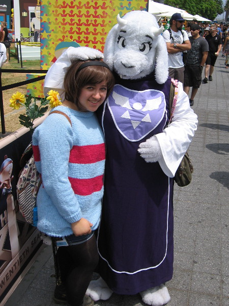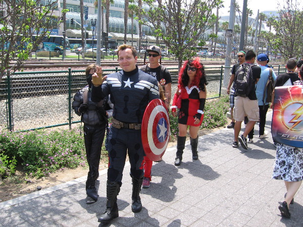 This cosplay of a Cylon from the original Battlestar Galactica had a moving red light in its helmet and cool Cylon sound effects!A great cosplay of Marvel’s famous superhero couple, Ant-Man and the Wasp.A truly great Addams Family cosplay on the street outside Comic-Con!I was told these ladies are characters from Alice in Wonderland. It appears to me one is the Queen of Hearts and the other is Alice.This cuddly killer is Unipool. He’s even got his own hashtag!I recognize Green Arrow, but the other cosplay I didn’t hear properly when I asked. Does someone out there know? Leave a comment if you do.I learned the cosplay on the right is Mega Man, but I didn’t catch the identity of the fellow on the left. Help!Cosplay of Raven of the Teen Titans.A very cool cosplay of a Jawa from Star Wars.This funny guy combined Joker and Donald Trump!A zombie walks through the Gaslamp with a big pink ribbon. Even the undead can fight for life!It took a moment, but then I realized these little guys were familiar. That’s Crow T. Robot from Mystery Science Theater on the right, and Tom Servo on the left!Menacing cosplay of Cobra Commander.It’s Pac-Man and a small Blinky!A super creative cosplay of a steampunk Batman.I hope the zombies rampaging through the Gaslamp Saturday night were careful. Because these guys wanna kill zombies.This cosplayer seemed a bit surprised that I recognized he was the Mouth of Sauron. I guess I’ve read and watched Lord of the Rings too many times.I learned these guys are cosplaying characters from the video game Fallout.A fun, creative cosplay of characters from The Nightmare Before Christmas.Here comes Spidey!These nice ladies were cosplaying Toriel and Frisk from Undertale.I think I heard this is a Pokemon cosplay. I might be wrong.These Medieval period enthusiasts hail from the Barony of Calafia. They are members of the Society for Creative Anachronism.Incredible cosplay of Ornstein the Dragon Slayer, from Dark Souls.Another super good cosplay. It’s Cable of the X-Men.Some really great costumes–all characters from Game of Thrones.Hey, Cap! What’s up?I was told this cosplay is Tyson Rios, of Army of Two.Super creative cosplay of Marvel’s Lady Sif, Asgardian warrior. Looks like the Jack Kirby version.This cosplay, I believe, is Victarion Greyjoy, from Game of Thrones.The Suicide Squad movie is coming up. This is the original Harley Quinn with an absurdly huge hammer. A little more humor in this version, perhaps.Cosplay of long-time movie hero Zorro!Cosplay from the original Tron. He thought the first movie was best.I was informed this is just a purple fuzzy creature with long ears! Even so, it looks somehow familiar.Cosplay of Liliana Vess, from Magic: The Gathering.This Poison Ivy cosplayer must’ve mistaken me for Batman, because she’s blowing a lethal kiss my way!Now a cosplay Catwoman is about to strike me with her whip! Ouch!These musicians in wild Mexican outfits were simply having fun entertaining 2016 San Diego Comic-Con fans in the Gaslamp.Here comes a cool cosplay of Cyclops. Don’t activate your visor! I’m a good guy!