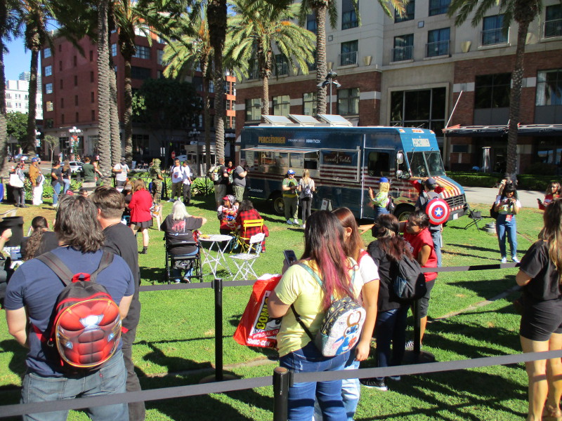By the early afternoon I was surprised to see a good crowd forming, and there was more cosplay than I expected. The La Brea and Peacemaker offsites were pretty busy, too!