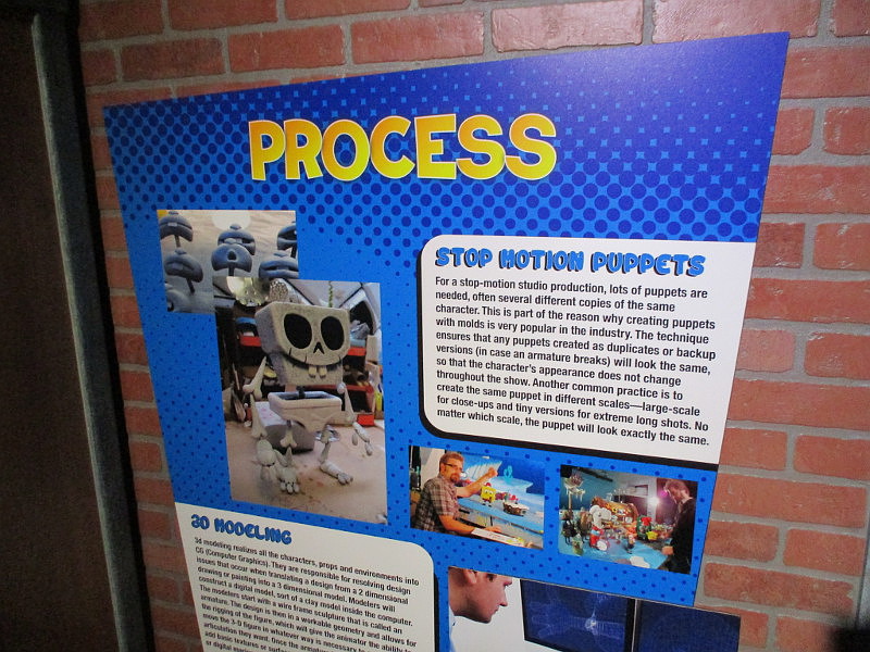 Among the numerous displays are realistic recreations of work stations, puppets and miniature sets that demonstrate what it’s like to be a stop motion animator.