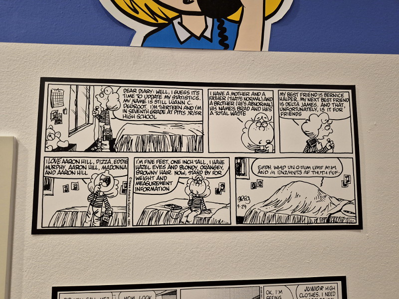 I must admit that as a boy I often skipped over the comic strip Luann. But now I have a new appreciation for the Luanniverse, because yesterday I enjoyed an exhibit at San Diego’s Comic-Con Museum: Growing Up Luann.