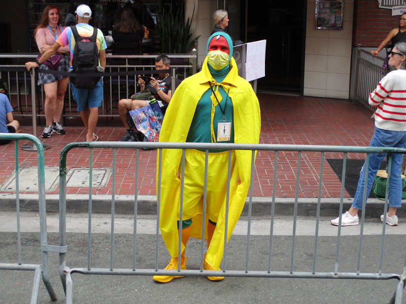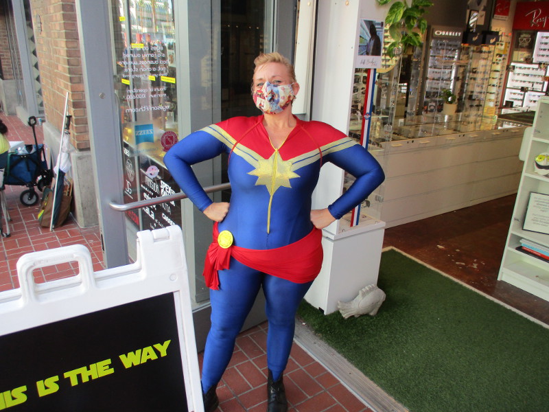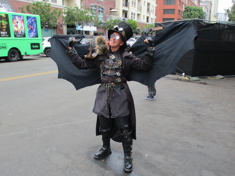 The world of Batman features crazy, mad characters. So it’s not surprising that superheroes Batman, Batgirl and the supervillain Mad Hatter are lurking in one of Balboa Park’s most crazily creative corners: the San Diego Sculptors Guild courtyard in Spanish Village!