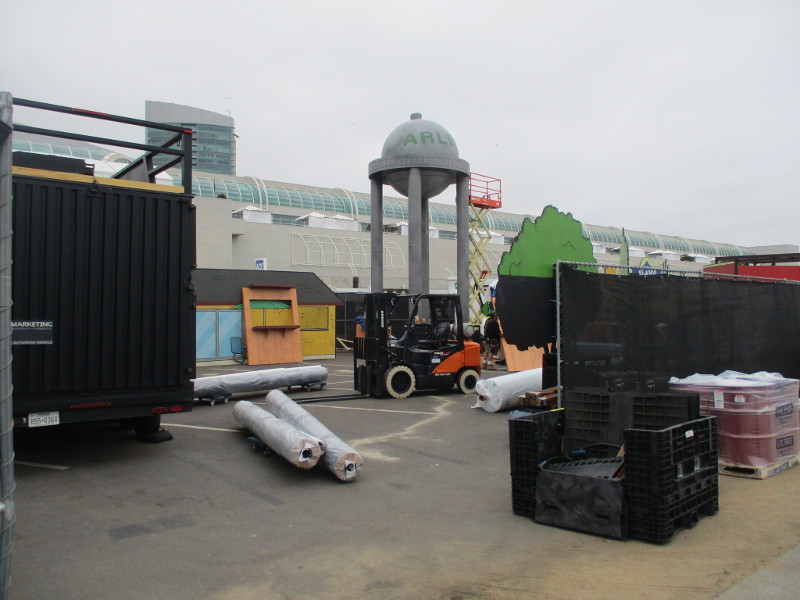 Comic-Con’s many offsite activations are in a big hurry to have everything ready to open tomorrow.