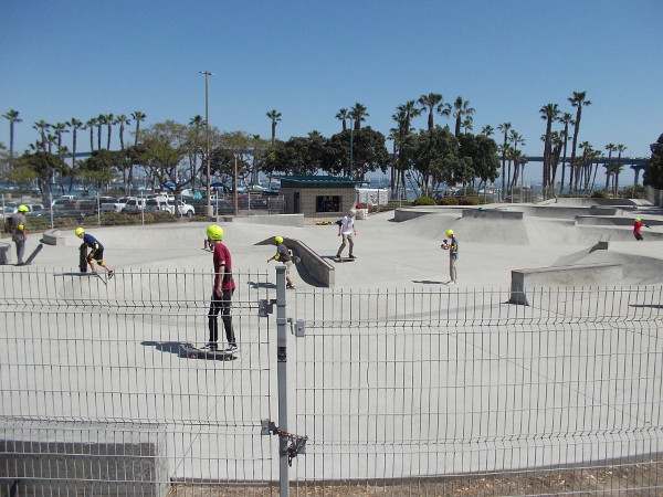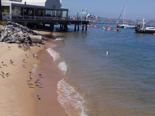 A guy wading in San Diego Bay tries his hand at some fly fishing. Moored boats (where some people live) and the San Diego–Coronado Bridge are visible.People walk and ride down the Bayshore Bikeway. Head the opposite way and you’d go under the Coronado Bridge, then along Glorietta Boulevard and the Coronado Golf Course, then finally south down the Silver Strand.Skateboarders enjoy the City of Coronado Skatepark located at Tidelands Park.A fun, artistic seat that just had to be photographed. I discovered it at the edge of the Coronado Tidelands Park playground.Looking through purple blooms out at the blue bay during a leisurely Saturday walk.At the Coronado Island Marriott Resort and Spa pier you can rent jet skis and kayaks for fun on the water. (A cool glint of light is reflecting off a skyscraper downtown!)Colorful lounges and a fire pit for apartment dwellers near the Bayshore Bikeway.A fisherman caught something while I watched! Lots of sailboats out on blue San Diego Bay today.These little bay overlooks with railings are popular spots to take in the scenery and sunshine.Look at all the weekend activity! Standup paddleboarders, a big group of kayakers, and the Coronado ferry is coming in!Tourists and locals alike can rent watercraft on this little beach just south of the posh Il Fornaio restaurant.Perhaps you can see why this is one of my very, very favorite places! I’m so thankful to live nearby!That big group of people in kayaks is rowing toward the Coronado Ferry Landing. The Manchester Grand Hyatt towers rise across the bay.Shorebirds dot a little sandy beach just south of another fine Coronado restaurant, Peohe’s.Now we’re finally heading into the sunny Ferry Landing Marketplace.Some more kayakers are passing the dock at Peohe’s, as outside diners watch. Night views of downtown San Diego lit up across the water are awesome.Some folks hurry to catch the Coronado Ferry! I think they just made it!Bicyclists relax after a ride along the Bayshore Bikeway. Another perfect day.