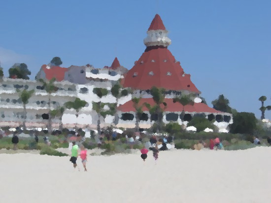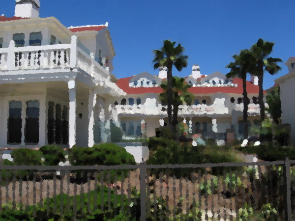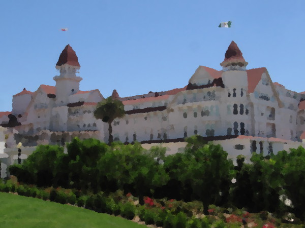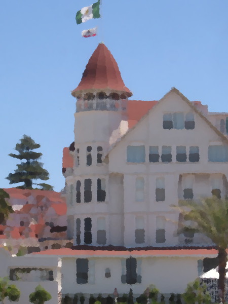 A month ago I used graphic software to change some of my photos of the California Tower into digital oil paintings. Yesterday, as I walked around Coronado, it suddenly occurred to me that I might do the same with the picturesque Hotel del Coronado!