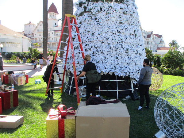 Yesterday I noticed a giant white Christmas tree has risen outside the Hotel del Coronado!