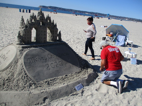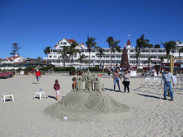 Before I entered the Winter Wonderland from the beach, I had to check out a cool sand sculpture created by the Sandcastle Man. I’ve seen many of his sculptures over the years. I asked how long he’s been building castles by the Hotel del Coronado. He said fourteen years!