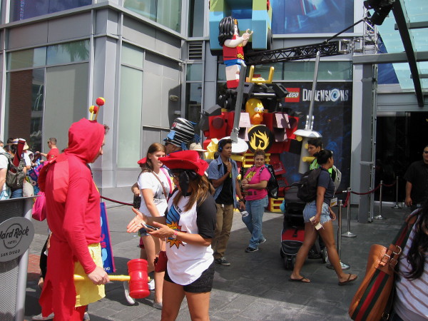Here’s a bunch of fun photos showing activity outside the convention center during 2015 San Diego Comic-Con. There’s so much to see, to absorb, one could happily spend hours just walking around. Most of these pics are from this evening–Thursday. A few are from Wednesday.