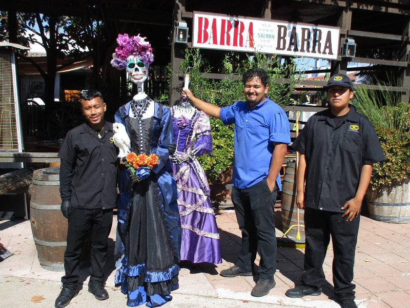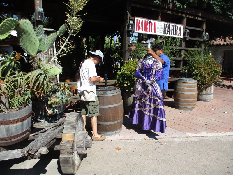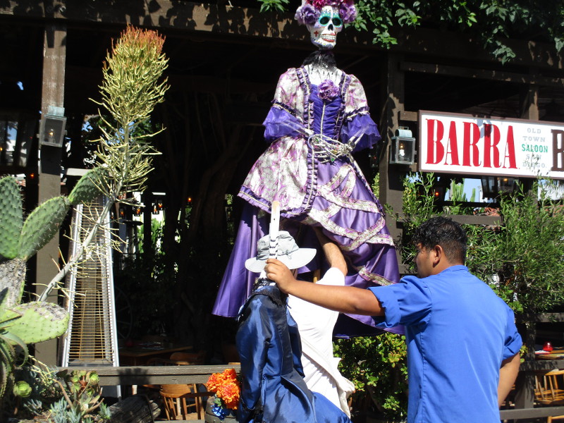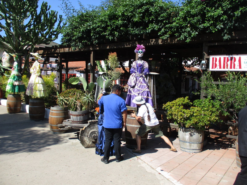 Old Town San Diego State Historic Park is already getting ready for Day of the Dead, or Día de los Muertos. Today I noticed that bigger than life Catrinas in beautiful dresses were being set up on barrels outside Fiesta de Reyes and Barra Barra!